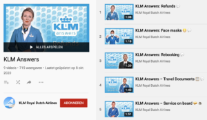 KLM ontwikkelde ‘uitlegvideo’s’ waarin de meeste gestelde vragen omtrent vliegen in coronatijd aan bod kwamen. Hiervoor gebruikten zij vaste gezichten (een steward en stewardess)
