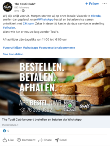 The Tosti Club heeft in de eerste Coronagolf direct geschakeld en zorgde ervoor dat mensen heel makkelijk bestellingen konden plaatsen en betalen via Whatsapp.